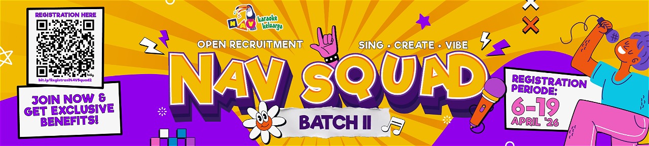 Buat kamu yang suka musik, senang bikin konten, dan ingin punya circle yang positif, sekarang adalah waktu yang tepat untuk mulai. Saat ini, NAV Karaoke sedang membuka NAV Squad Batch 2 hingga 19 April 2026.